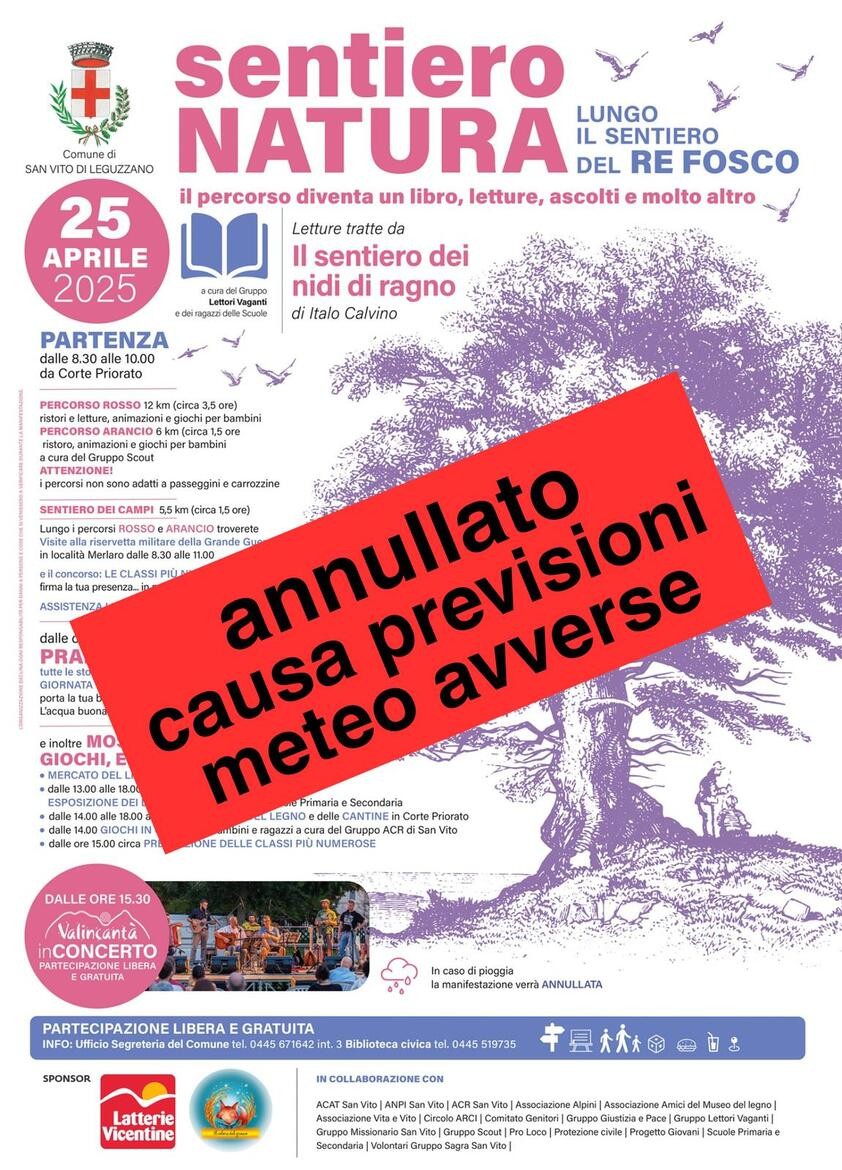 EVENTO ANNULLATO CAUSA PREVISIONI METEO AVVERSE.