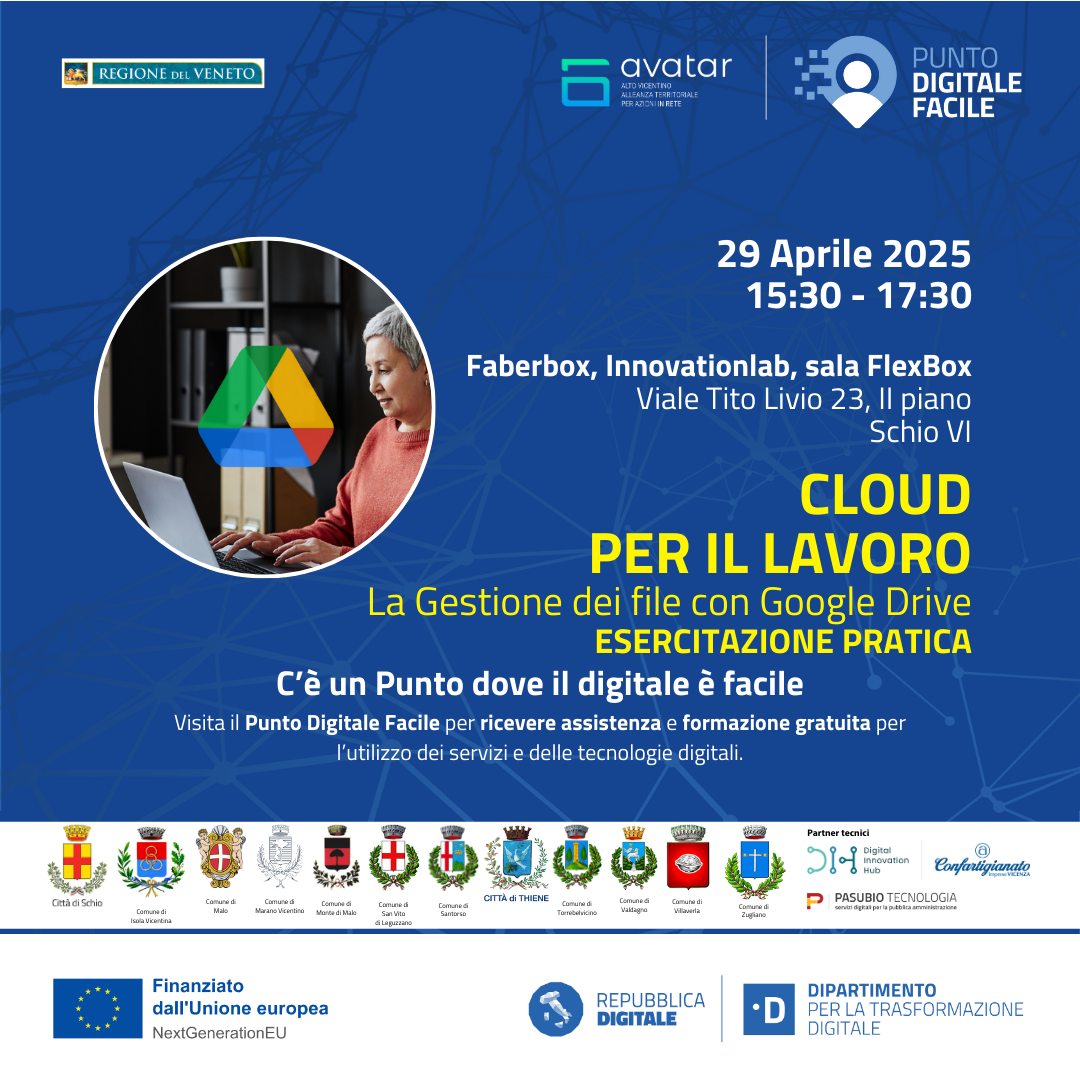 Per chi non potrà partecipare in presenza, sarà possibile seguire l’evento online tramite Zoom: il link di accesso sarà inviato via email a ridosso dell’incontro. Inoltre, nei giorni successivi, la registrazione del corso sarà disponibile presso i Punti Digitale Facile del progetto AVATAR – Alto Vicentino Alleanza Territoriale per Azione in Rete.
