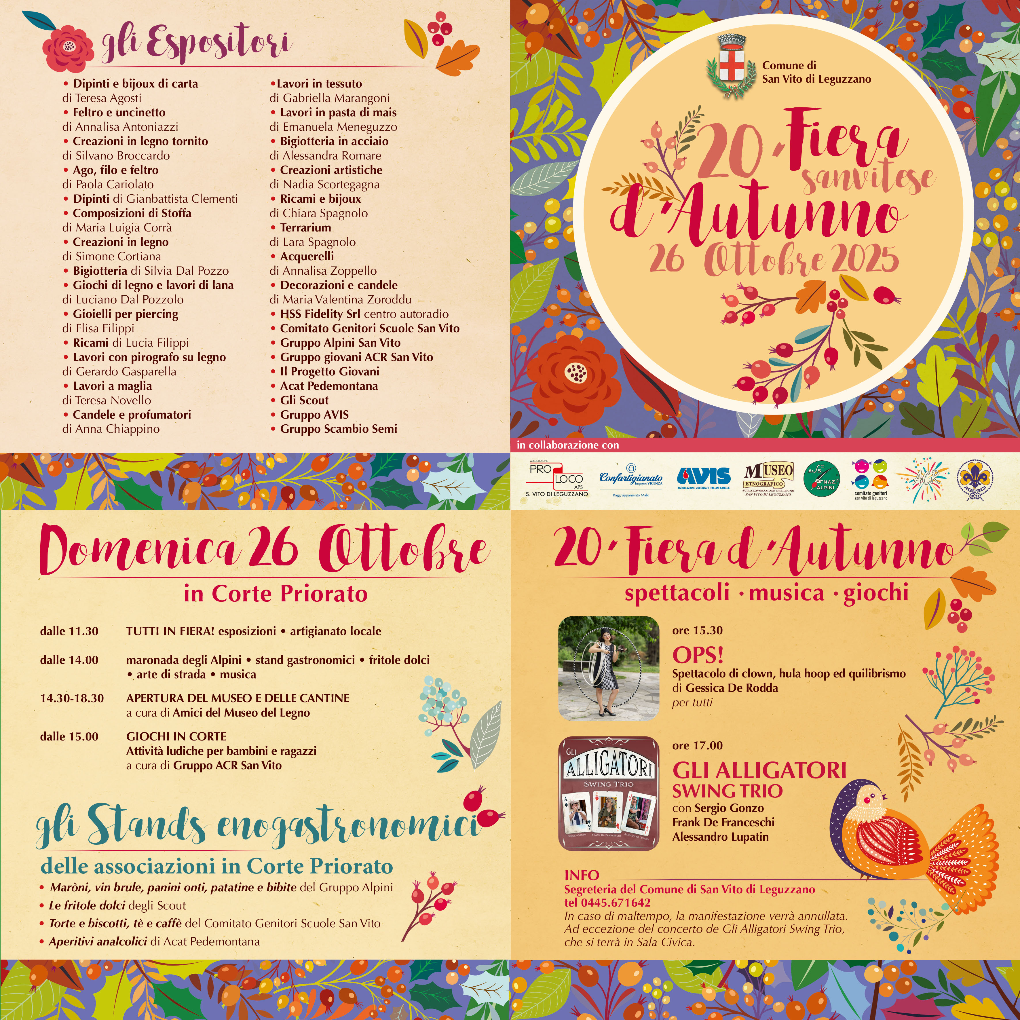 (in caso di maltelpo, la manifestazione sarà annullata ed eccezione del concerto che si terrà in Sala Civica)