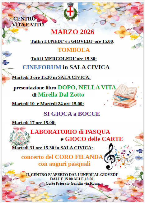 Le attività del Centro Vita e Vito del mese di MARZO 2026