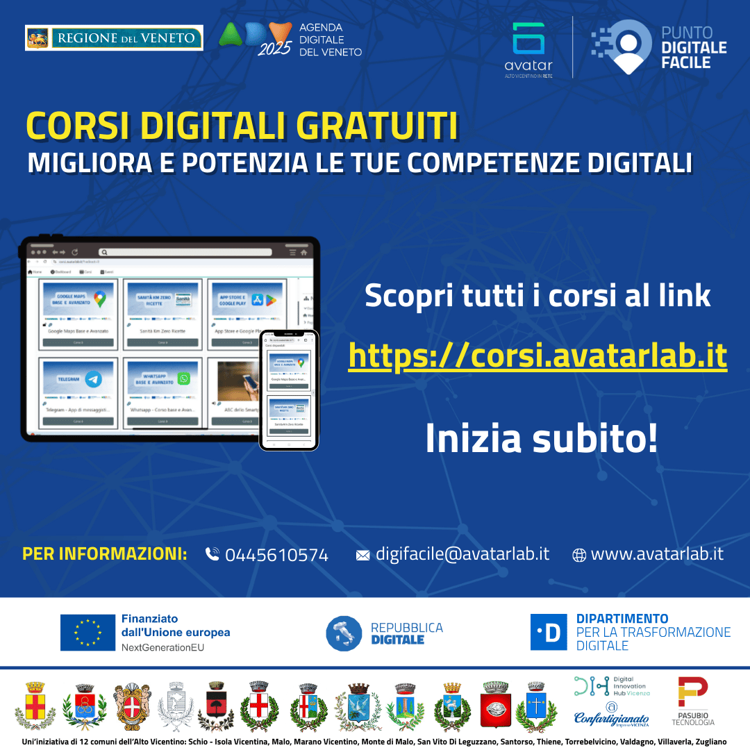 E’ online la piattaforma formativa del Progetto AVATAR, uno strumento innovativo che mette a disposizione di tutta la cittadinanza una vasta gamma di corsi completamente gratuiti sul mondo del digitale.