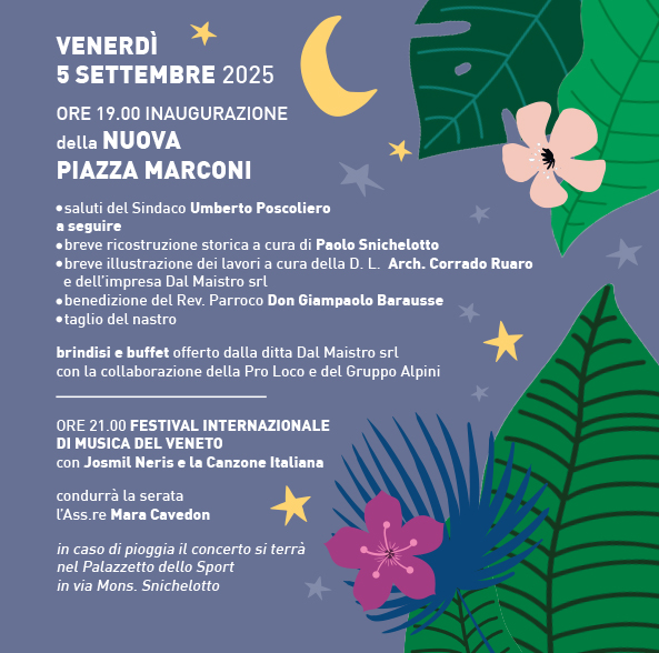 (in caso di pioggia il concerto si terrà nel Palazzetto dello Sport in via Mons. Snichelotto)